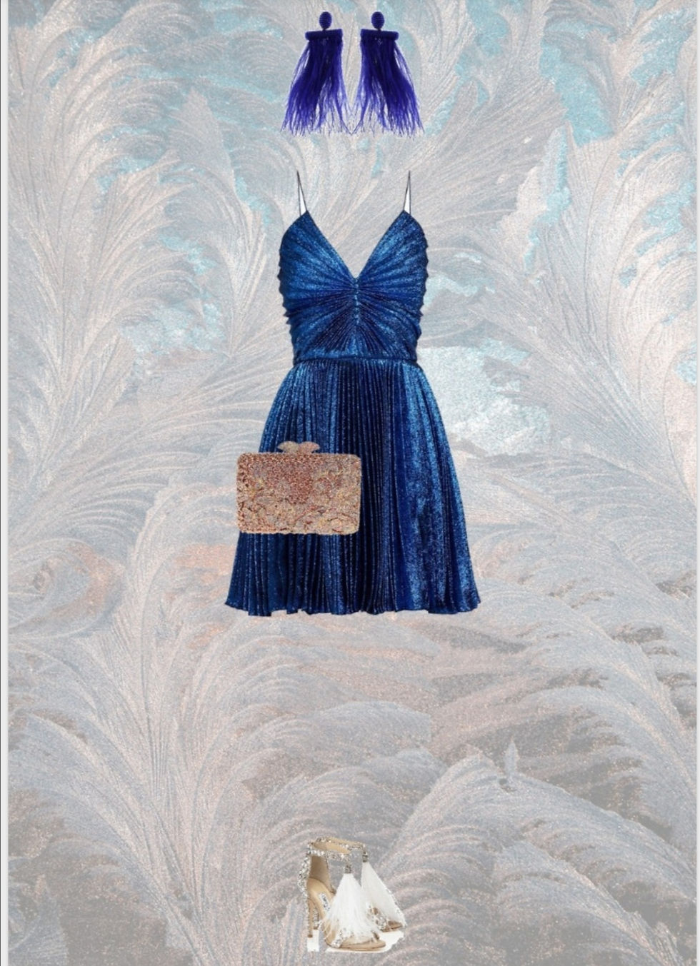 Siempre bella pero más relajada y muy romántica, con azul elegante y plumas en los accesorios.